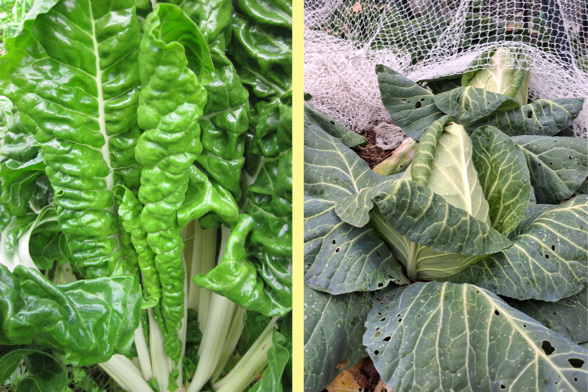 Two examples of by-annual vegetable plants. LEFT: Silverbeet. RIGHT: cabbage.