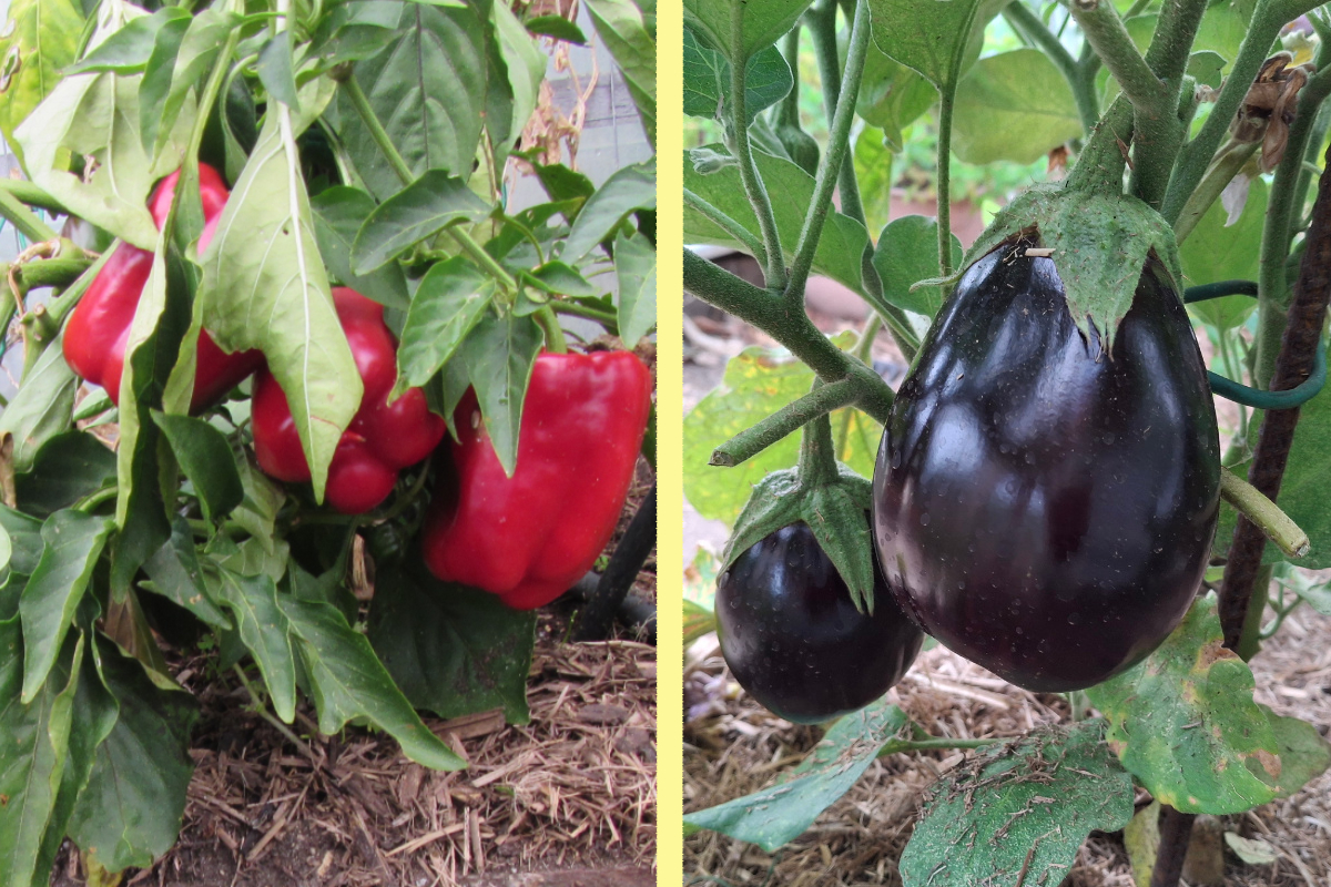 Two examples of vegetable plants that are grown as perennials in the tropics and sub-tropics but as annuals in temperate climes. LEFT: Californian Wonder capsicum. RIGHT: Black Beauty eggplant.