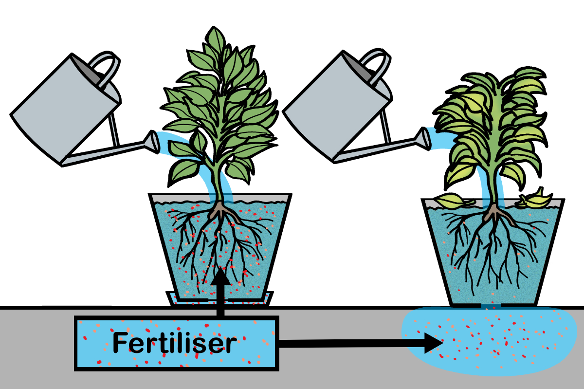 There is an increased risk of nutrients leaching out of the soil as water drains through the pot. It is important that pots have a saucer under them to trap excess water.