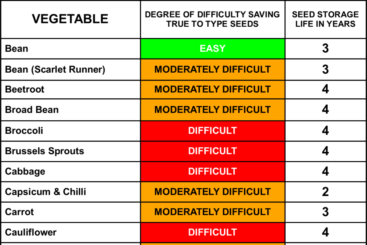 For a separate seed storage life chart download the PDF: Vegetable Seed Storage Shelf Life.