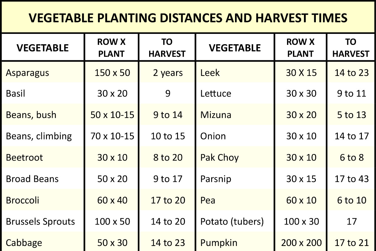 There are recommended planting distances between vegetables and between rows of vegetables to maximise productivity. Plant too far apart and you will be wasting valuable garden space but planting seeds closer together than recommended increases the risk of pest and disease problems if they are not thinned out as the young plants grow.